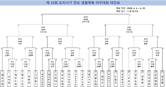 제 25회 도지사기 전도 생활체육 야구대회 대진표